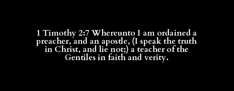 1 Timothy 2:7 Whereunto I am ordained a preacher, and an apostle, (I speak the truth in Christ, and lie not;) a teacher of the Gentiles in faith and verity.