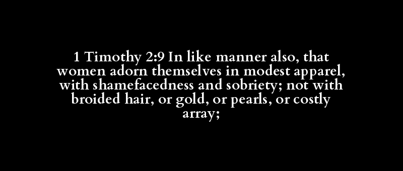 1 Timothy 2:9 In like manner also, that women adorn themselves in modest apparel, with shamefacedness and sobriety; not with broided hair, or gold, or pearls, or costly array;