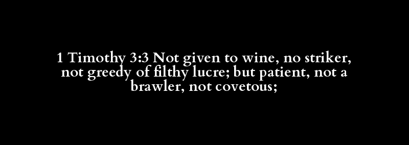 1 Timothy 3:3 Not given to wine, no striker, not greedy of filthy lucre; but patient, not a brawler, not covetous;