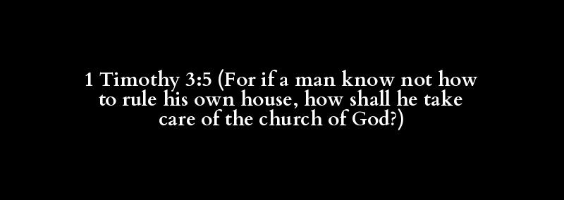 1 Timothy 3:5 (For if a man know not how to rule his own house, how shall he take care of the church of God?)