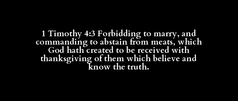 1 Timothy 4:3 Forbidding to marry, and commanding to abstain from meats, which God hath created to be received with thanksgiving of them which believe and know the truth.