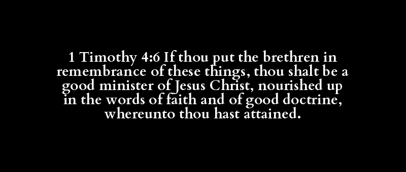 1 Timothy 4:6 If thou put the brethren in remembrance of these things, thou shalt be a good minister of Jesus Christ, nourished up in the words of faith and of good doctrine, whereunto thou hast attained.