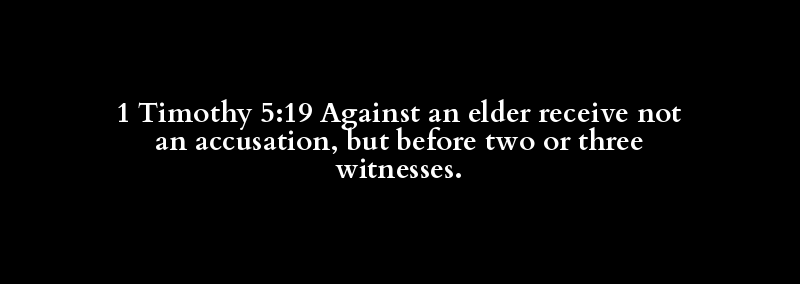 1 Timothy 5:19 Against an elder receive not an accusation, but before two or three witnesses.