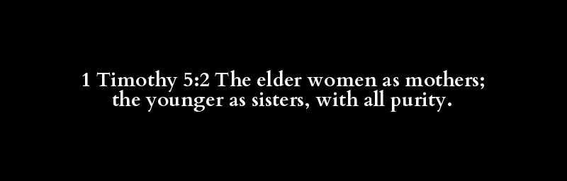 1 Timothy 5:2 The elder women as mothers; the younger as sisters, with all purity.