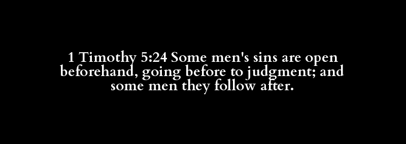 1 Timothy 5:24 Some men's sins are open beforehand, going before to judgment; and some men they follow after.