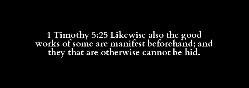 1 Timothy 5:25 Likewise also the good works of some are manifest beforehand; and they that are otherwise cannot be hid.