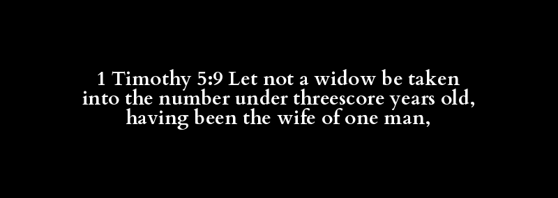 1 Timothy 5:9 Let not a widow be taken into the number under threescore years old, having been the wife of one man,