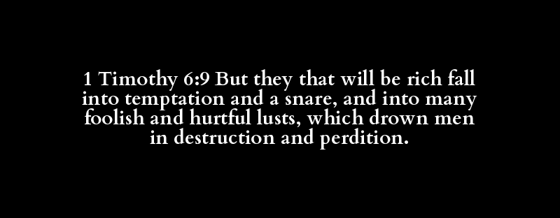1 Timothy 6:9 But they that will be rich fall into temptation and a snare, and into many foolish and hurtful lusts, which drown men in destruction and perdition.