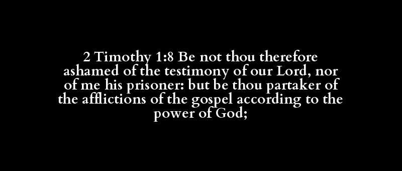 2 Timothy 1:8 Be not thou therefore ashamed of the testimony of our Lord, nor of me his prisoner: but be thou partaker of the afflictions of the gospel according to the power of God;