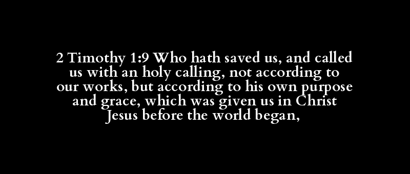 2 Timothy 1:9 Who hath saved us, and called us with an holy calling, not according to our works, but according to his own purpose and grace, which was given us in Christ Jesus before the world began,