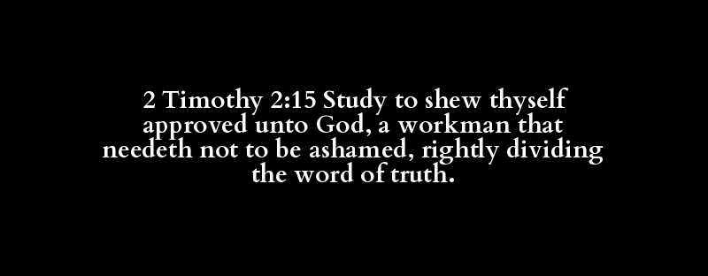 2 Timothy 2:15 Study to shew thyself approved unto God, a workman that needeth not to be ashamed, rightly dividing the word of truth.