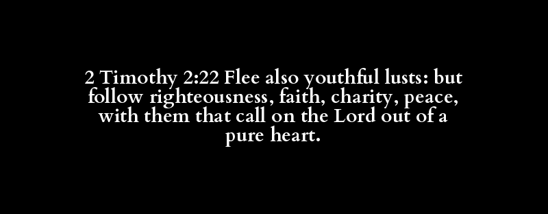 2 Timothy 2:22 Flee also youthful lusts: but follow righteousness, faith, charity, peace, with them that call on the Lord out of a pure heart.