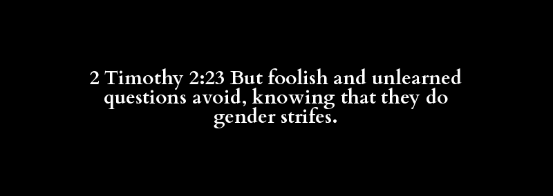 2 Timothy 2:23 But foolish and unlearned questions avoid, knowing that they do gender strifes.