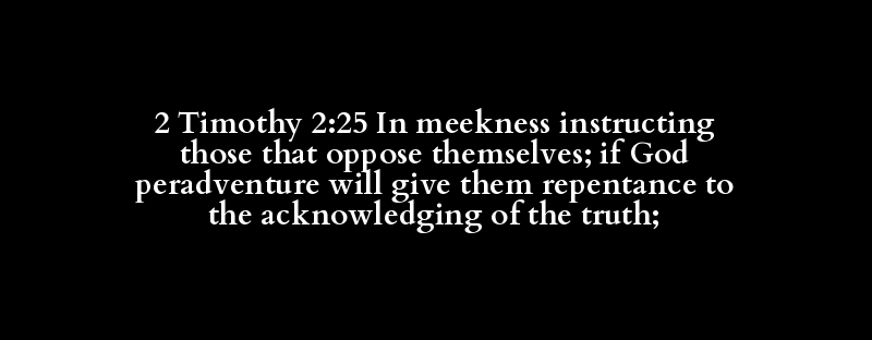 2 Timothy 2:25 In meekness instructing those that oppose themselves; if God peradventure will give them repentance to the acknowledging of the truth;