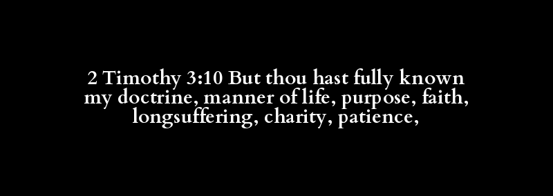 2 Timothy 3:10 But thou hast fully known my doctrine, manner of life, purpose, faith, longsuffering, charity, patience,