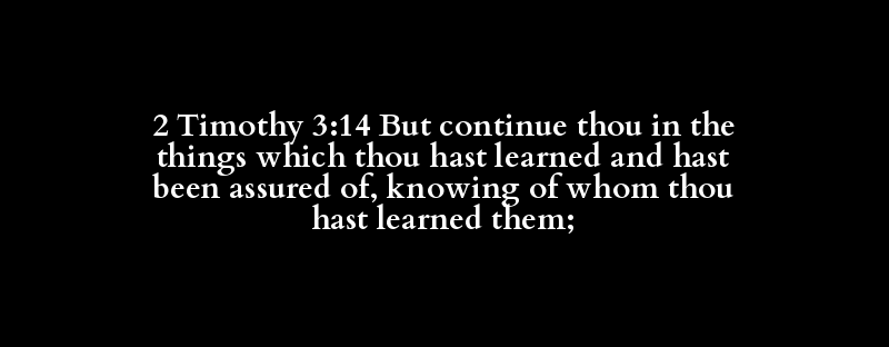 2 Timothy 3:14 But continue thou in the things which thou hast learned and hast been assured of, knowing of whom thou hast learned them;