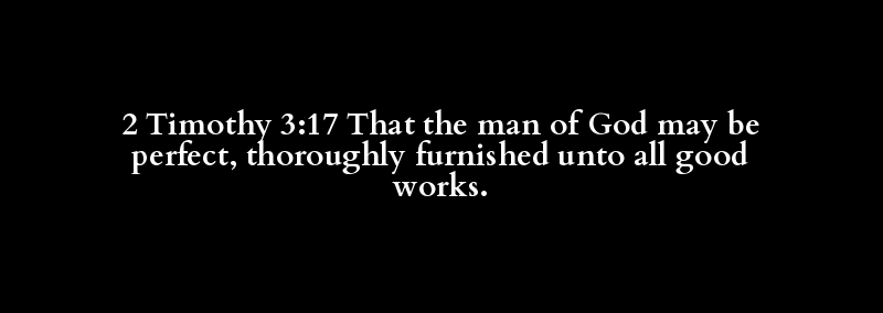 2 Timothy 3:17 That the man of God may be perfect, thoroughly furnished unto all good works.