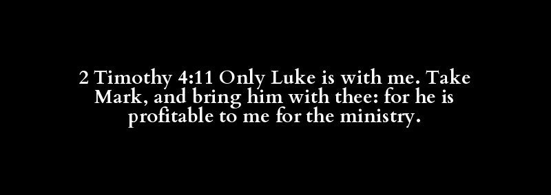 2 Timothy 4:11 Only Luke is with me. Take Mark, and bring him with thee: for he is profitable to me for the ministry.