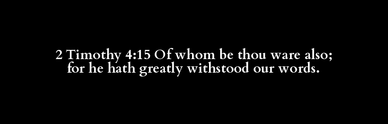 2 Timothy 4:15 Of whom be thou ware also; for he hath greatly withstood our words.