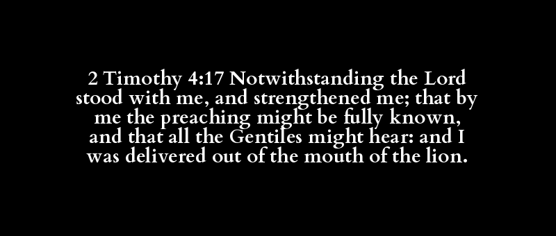 2 Timothy 4:17 Notwithstanding the Lord stood with me, and strengthened me; that by me the preaching might be fully known, and that all the Gentiles might hear: and I was delivered out of the mouth of the lion.