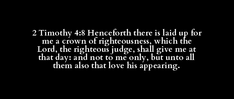 2 Timothy 4:8 Henceforth there is laid up for me a crown of righteousness, which the Lord, the righteous judge, shall give me at that day: and not to me only, but unto all them also that love his appearing.