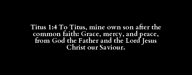 Titus 1:4 To Titus, mine own son after the common faith: Grace, mercy, and peace, from God the Father and the Lord Jesus Christ our Saviour.