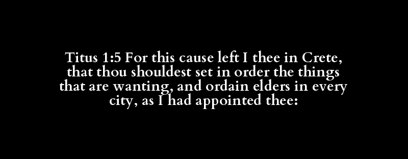 Titus 1:5 For this cause left I thee in Crete, that thou shouldest set in order the things that are wanting, and ordain elders in every city, as I had appointed thee: