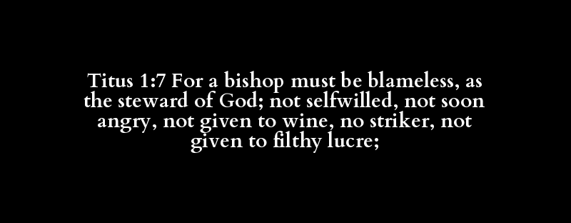 | and, as, because (that), but, even, fo.. | bishop, overseer | behoved, be meet, must (needs), (be) n.. | am, was, is, X lust after, X please we.. | blameless | about, after (that), (according) as (i.. | chamberlain, governor, steward | God, god(-ly, -ward), | any but (that), X forbear, + God forbi.. | self-willed | any but (that), X forbear, + God forbi.. | soon angry | any but (that), X forbear, + God forbi.. | given to wine | any but (that), X forbear, + God forbi.. | striker | any but (that), X forbear, + God forbi.. | given to (greedy of) filthy lucre |