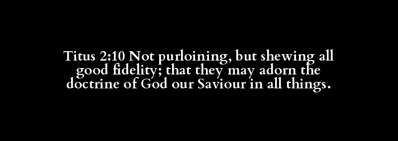 Titus 2:10 Not purloining, but shewing all good fidelity; that they may adorn the doctrine of God our Saviour in all things.