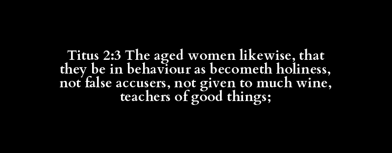 Titus 2:3 The aged women likewise, that they be in behaviour as becometh holiness, not false accusers, not given to much wine, teachers of good things;