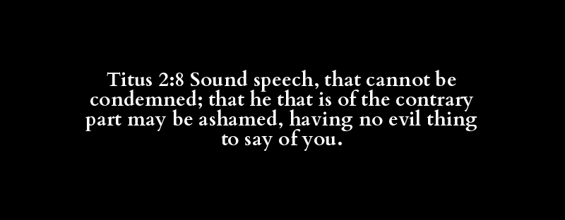 Titus 2:8 Sound speech, that cannot be condemned; that he that is of the contrary part may be ashamed, having no evil thing to say of you.