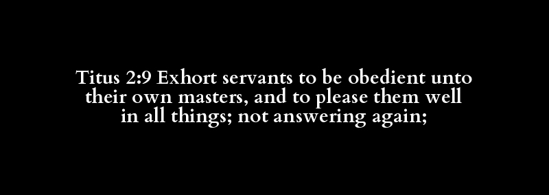 Titus 2:9 Exhort servants to be obedient unto their own masters, and to please them well in all things; not answering again;