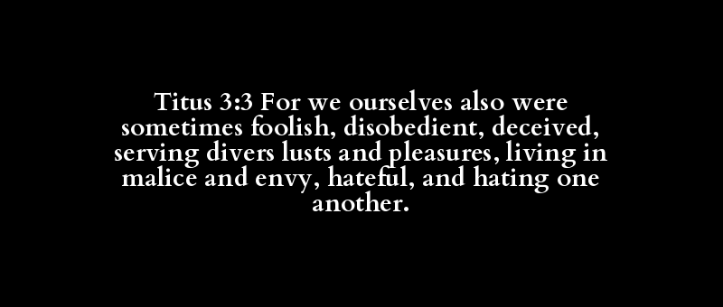 Titus 3:3 For we ourselves also were sometimes foolish, disobedient, deceived, serving divers lusts and pleasures, living in malice and envy, hateful, and hating one another.