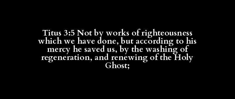 Titus 3:5 Not by works of righteousness which we have done, but according to his mercy he saved us, by the washing of regeneration, and renewing of the Holy Ghost;
