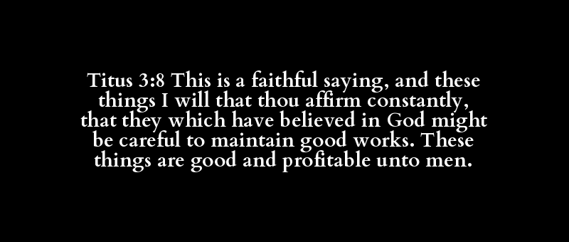 Titus 3:8 This is a faithful saying, and these things I will that thou affirm constantly, that they which have believed in God might be careful to maintain good works. These things are good and profitable unto men.