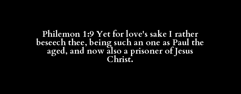 Philemon 1:9 Yet for love's sake I rather beseech thee, being such an one as Paul the aged, and now also a prisoner of Jesus Christ.