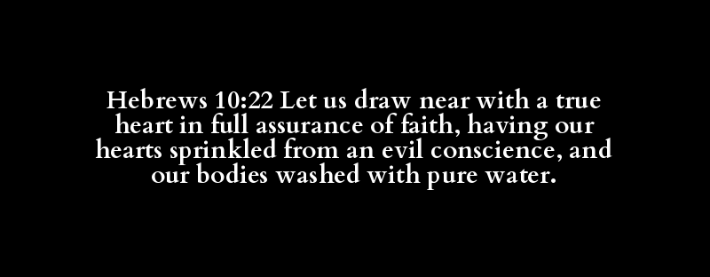Hebrews 10:22 Let us draw near with a true heart in full assurance of faith, having our hearts sprinkled from an evil conscience, and our bodies washed with pure water.