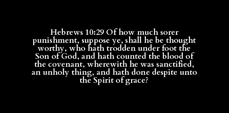 Hebrews 10:29 Of how much sorer punishment, suppose ye, shall he be thought worthy, who hath trodden under foot the Son of God, and hath counted the blood of the covenant, wherewith he was sanctified, an unholy thing, and hath done despite unto the Spirit of grace?