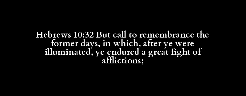 Hebrews 10:32 But call to remembrance the former days, in which, after ye were illuminated, ye endured a great fight of afflictions;