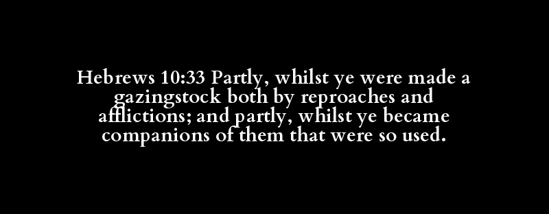 Hebrews 10:33 Partly, whilst ye were made a gazingstock both by reproaches and afflictions; and partly, whilst ye became companions of them that were so used.