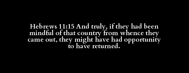 Hebrews 11:15 And truly, if they had been mindful of that country from whence they came out, they might have had opportunity to have returned.