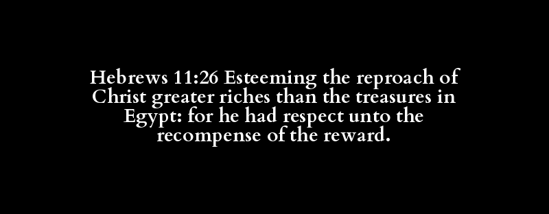 Hebrews 11:26 Esteeming the reproach of Christ greater riches than the treasures in Egypt: for he had respect unto the recompense of the reward.