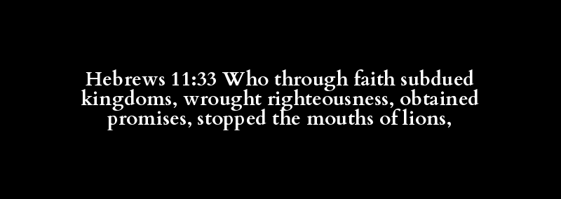 Hebrews 11:33 Who through faith subdued kingdoms, wrought righteousness, obtained promises, stopped the mouths of lions,