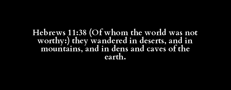 Hebrews 11:38 (Of whom the world was not worthy:) they wandered in deserts, and in mountains, and in dens and caves of the earth.