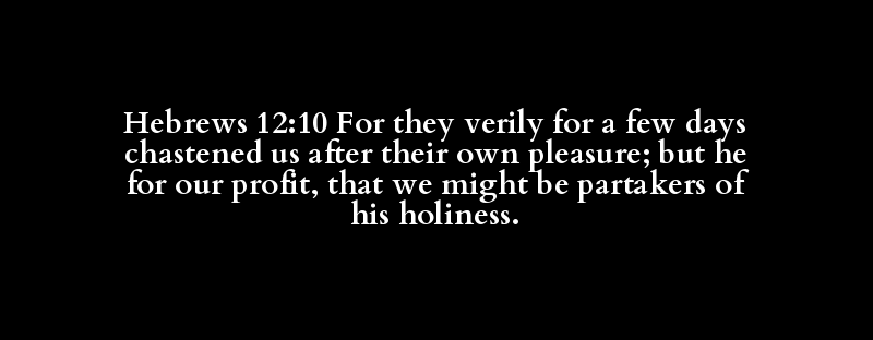 Hebrews 12:10 For they verily for a few days chastened us after their own pleasure; but he for our profit, that we might be partakers of his holiness.