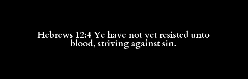 Hebrews 12:4 Ye have not yet resisted unto blood, striving against sin.