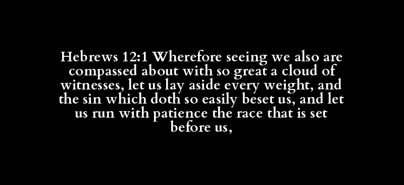 Hebrews 12:1 Wherefore seeing we also are compassed about with so great a cloud of witnesses, let us lay aside every weight, and the sin which doth so easily beset us, and let us run with patience the race that is set before us,