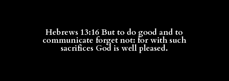 Hebrews 13:16 But to do good and to communicate forget not: for with such sacrifices God is well pleased.