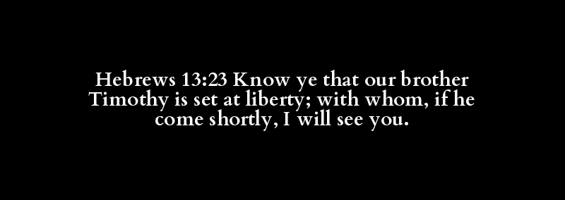 Hebrews 13:23 Know ye that our brother Timothy is set at liberty; with whom, if he come shortly, I will see you.