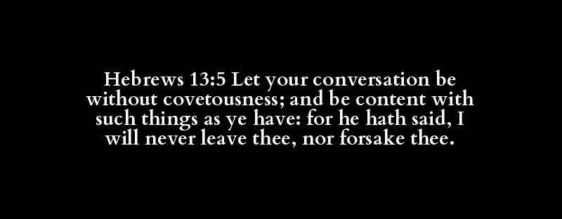 Hebrews 13:5 Let your conversation be without covetousness; and be content with such things as ye have: for he hath said, I will never leave thee, nor forsake thee.